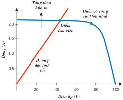 quan hệ V-I, ép tấm pin mặt trời phải làm việc tại điểm công suất cực đại, nhầm làm cho các