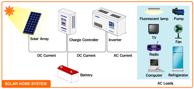 Solar Inverter, Solar Charger Controller, PV panel, Solar Battery